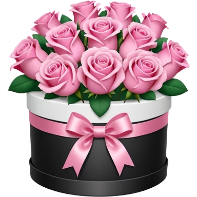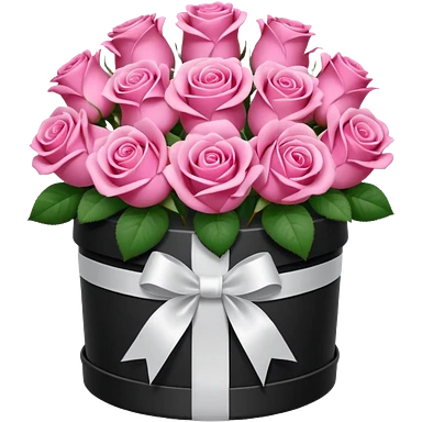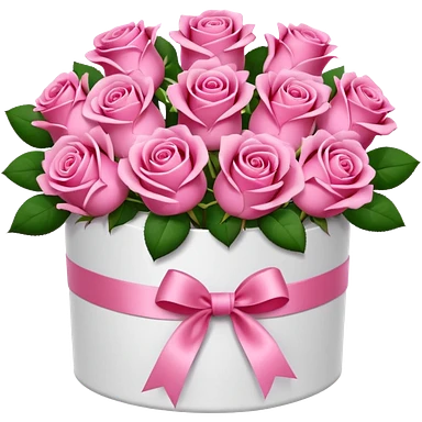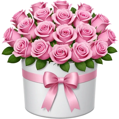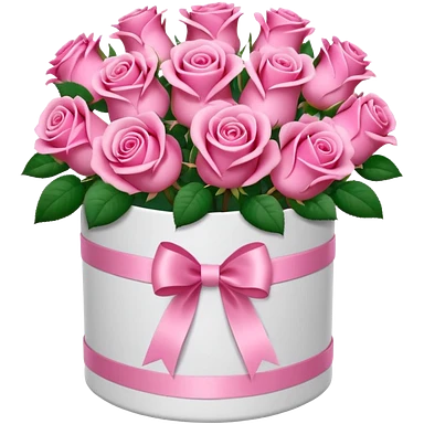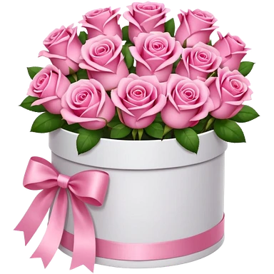 bouquet of pink 15 roses in a round white box emoji | AI Emoji Generator