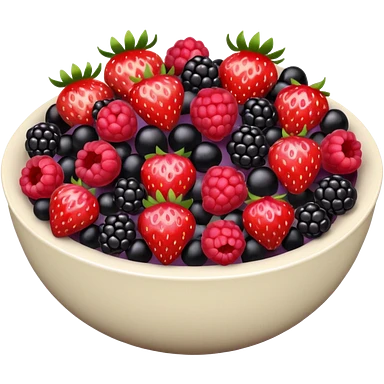 bowl negro solo de frutos rojos: fresas, moras, frambuesas. con vista desde arriba. emoji