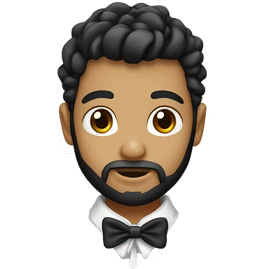 A dog (pug) with a crown in a white suit and a red bow and black braces emoji