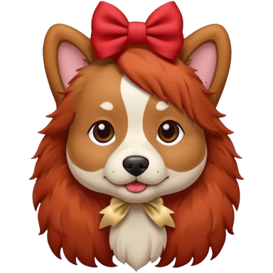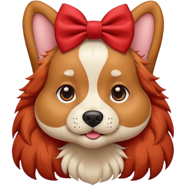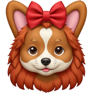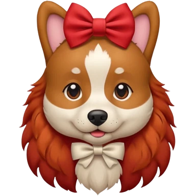 A dog with a bow on the right ear just the face and its mouth open emoji