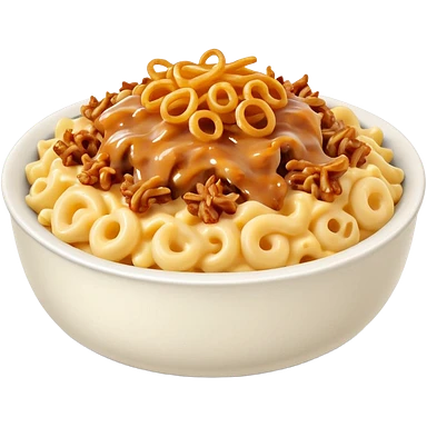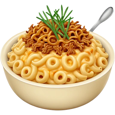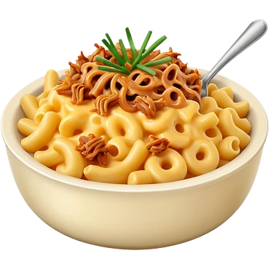 Bowl of Mac and cheese with chives and pulled pork emoji | AI Emoji Generator