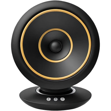 Single black desktop speaker with glossy front, one large white cone with black center, small volume knob, clean white background, studio product photo. emoji