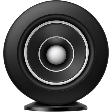 Single simple black desktop speaker, one round white cone with black center, boxy shape, clean white background, product photo. emoji