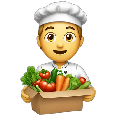 A CHEF WITH A SURPRISE BOX full of vegetables emoji