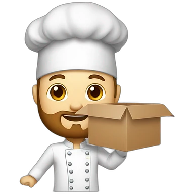 A CHEF WITH A SURPRISE BOX full of vegetables with no hat chef and a beard white skin emoji