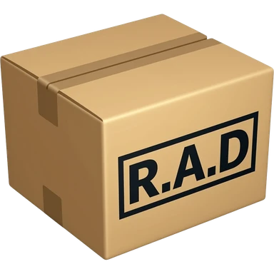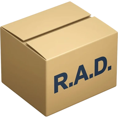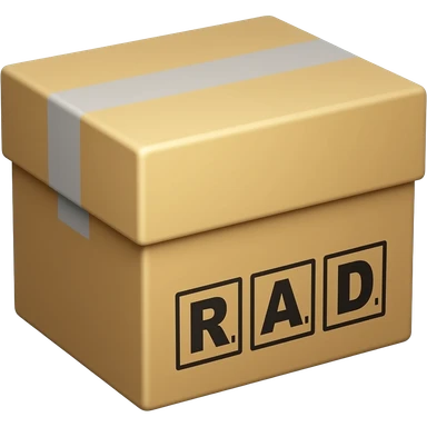 skateboard with stylised RAD in capitals letters on the back with it emoji