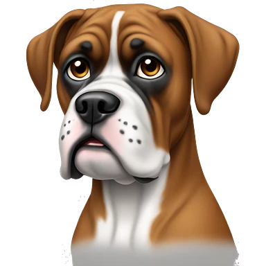 cinematic-[boxer dog]-realistic-full-body-sitting-emoji,-tail-resting-loosely-beside-its-paws,-head-tilted-dramatically,-sleek-[brown]-fur,-simplified-yet-realistic-focused-features,-highly-detailed,-glowing-with-an-almost-sarcastic-glow emoji
