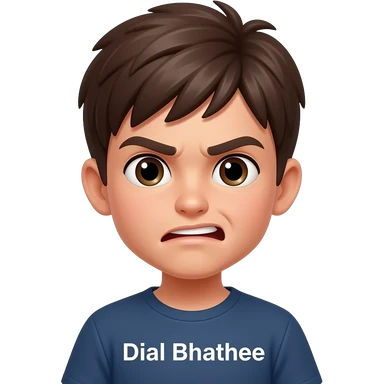 boy in mad mode image. add the text "Dial Bhathee" emoji