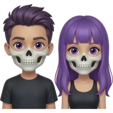 BOY AND GIRL WITH LONG PURPLE HAIR WEARS A SKULLMASK emoji