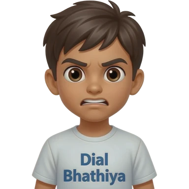 boy in mad mode image.add the text to the tshirt "Dial Bhathiya" emoji
