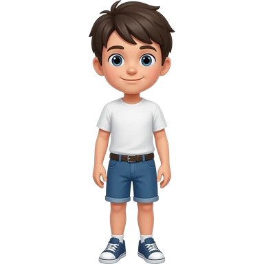 boy short blonde hair blue shirt black shorts, blue eyes 12 yr old emoji