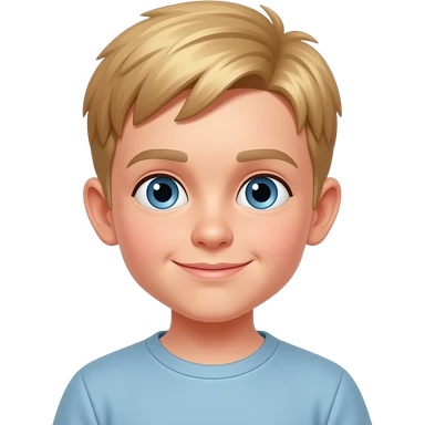 boy short blonde hair blue shirt black sharts, blue eyes 12 yr old emoji