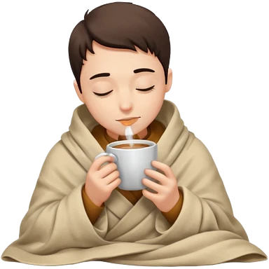 Boy inside a blanket sipping coffee eyes closed emoji