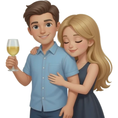 boy hugging girl from behind with glass of wine emoji