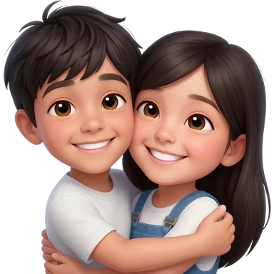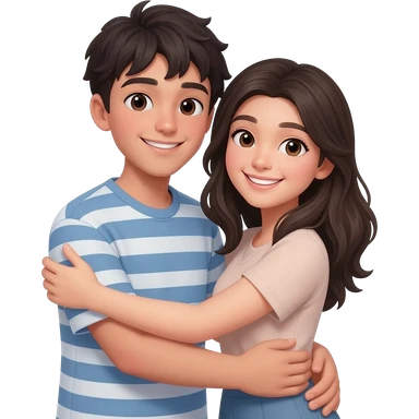 Boy with dark hair hugging a girl with dark hair emoji