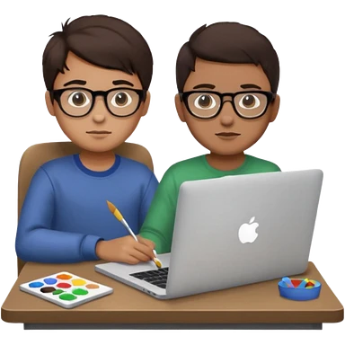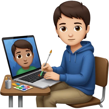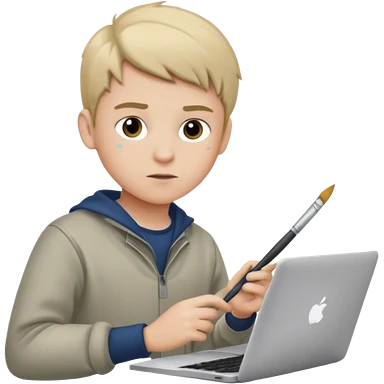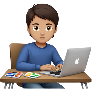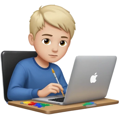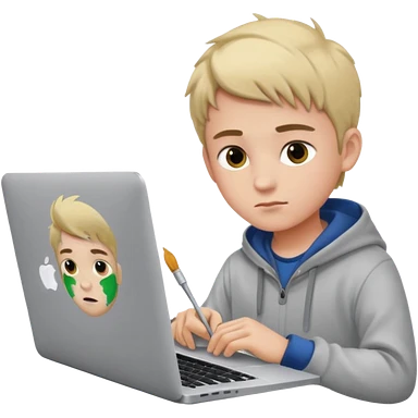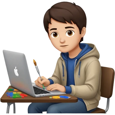 boy working in Macbook, he is graphic designer and paint artist emoji