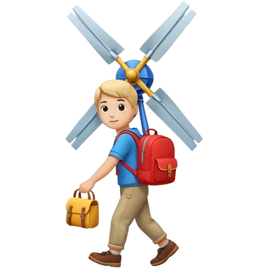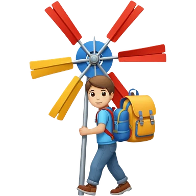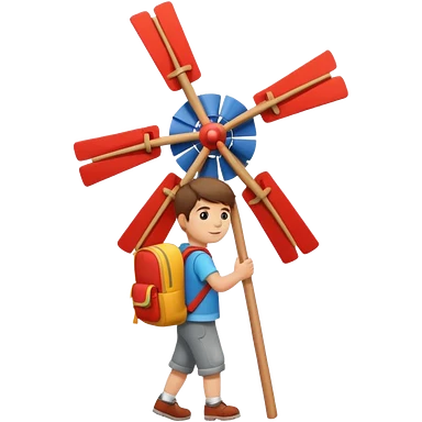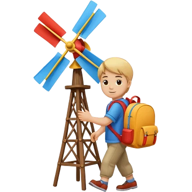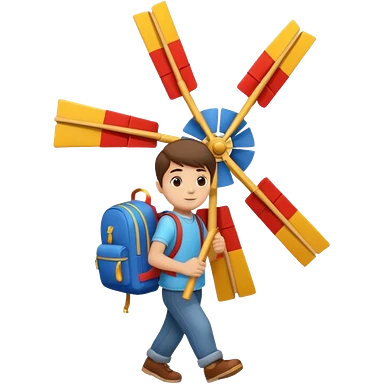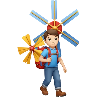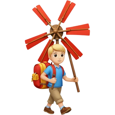 Boy carrying toy windmill backpack emoji