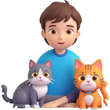 boy and cat pet in forrest background, close up pose emoji | AI Emoji Generator