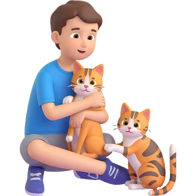boy and cat pet in forrest background, close up pose emoji | AI Emoji Generator