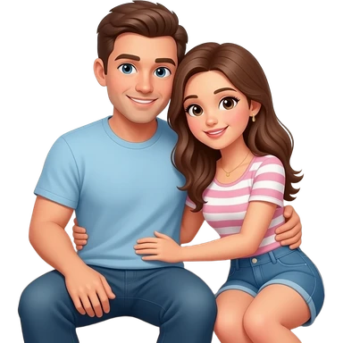 Girl with brown hair cuddle with curly hair guy brown hair emoji