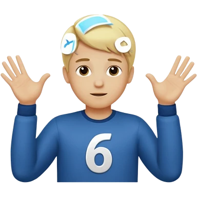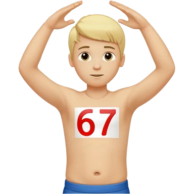 Boy doing 67 with hands in the air up to his chest and he is holding 6 in one hand and seven in the other emoji | AI Emoji Generator