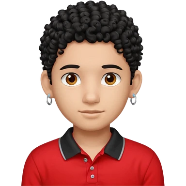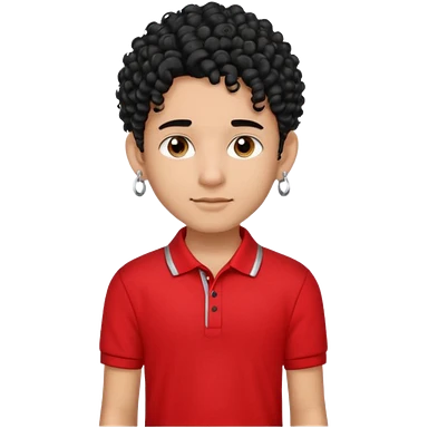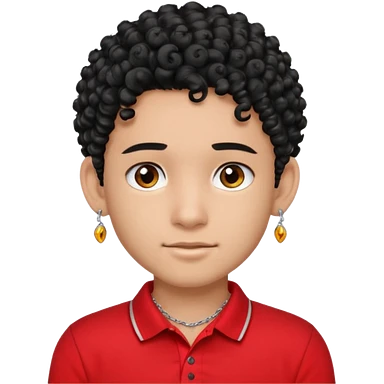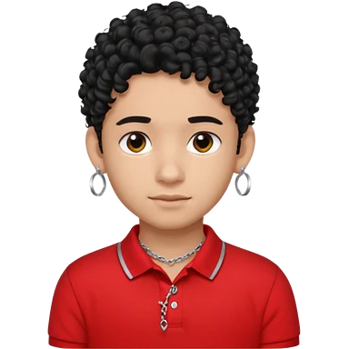 teen boy, indian, black curly hair, undercut hairstyle, silver earring in one ear, red polo shirt, silver chain emoji