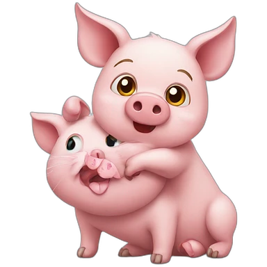 pig falling in love with cat emoji