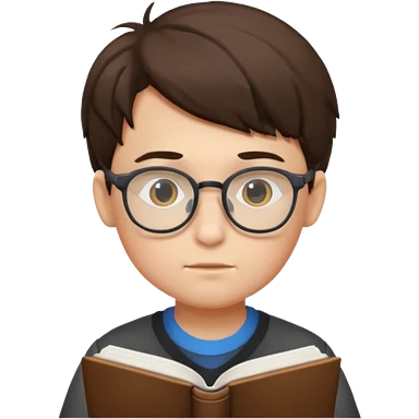 Boy with glasses and short curly hair focused on his gameboy remote emoji