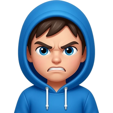 boy with vibrant blue hoodie angry emoji