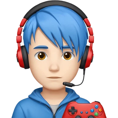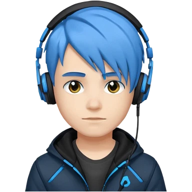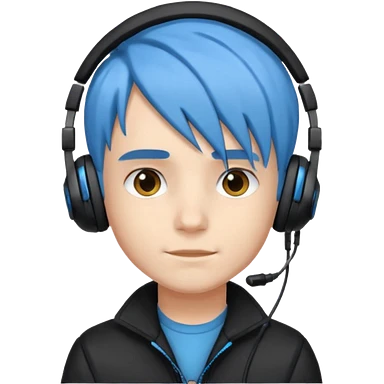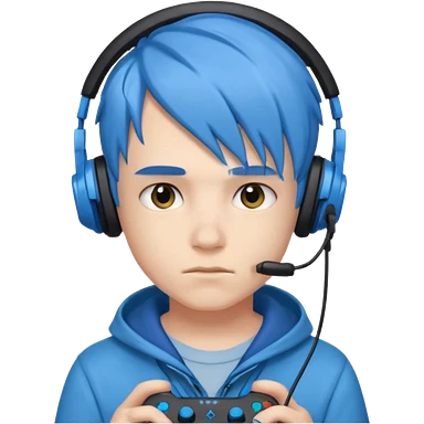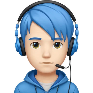 Boy gamer with headset, blue hair emoji | AI Emoji Generator