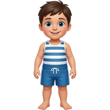 full-bodied standing slim young child boy wearing shorts swimsuit emoji