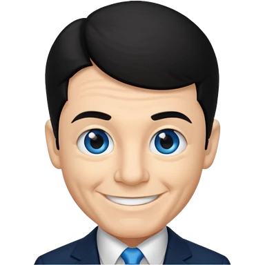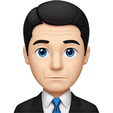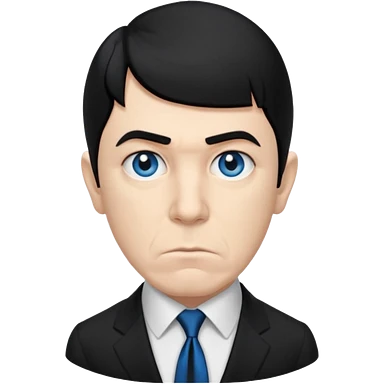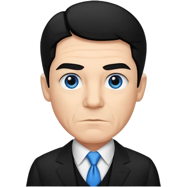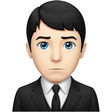 Moe Howard from the Three Stooges with blue eyes, black hair, black suit emoji
