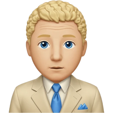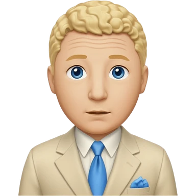 Curly Howard from the Three Stooges with blue eyes, blonde hair, ivory suit emoji