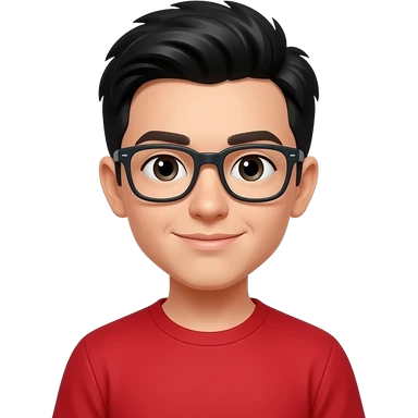 boy with black hair and glasses in red shirt emoji