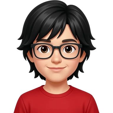 boy with black mid legnth hair and glasses on red shirt emoji