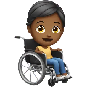 Brunette young boy with brown eyes in wheelchair smiling emoji