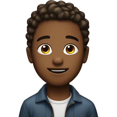 Brown boy with short curly hair dreaming abouthis girlfriend small smirk on his face eyes closed with a little heart next to him emoji