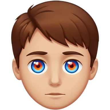 young boy, white, short black hair, brown eyes. He wears black prescription glasses and only a small silver hoop earring in his right ear. Wear a red t-shirt emoji