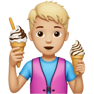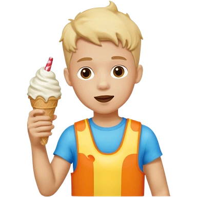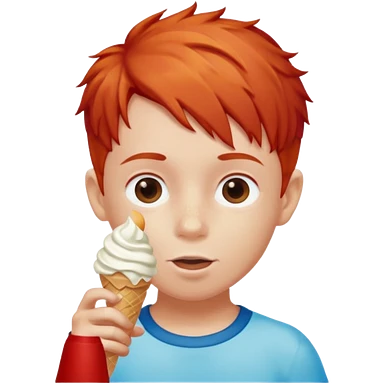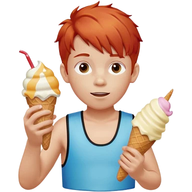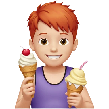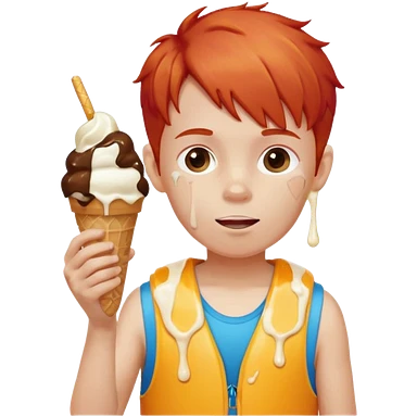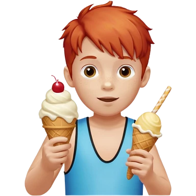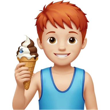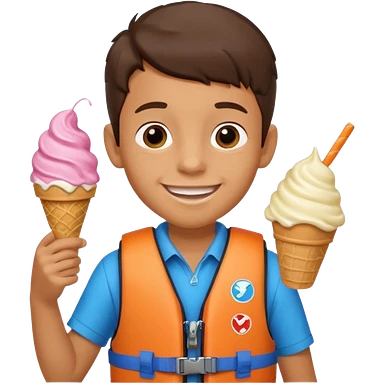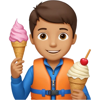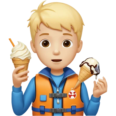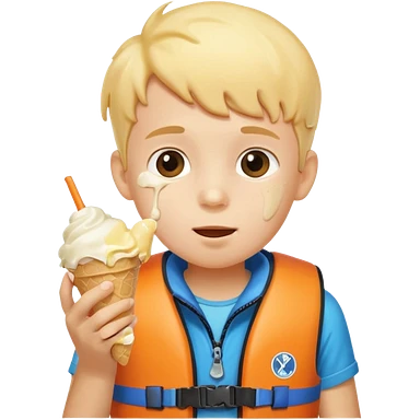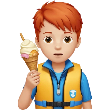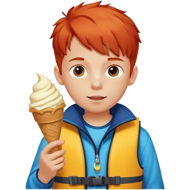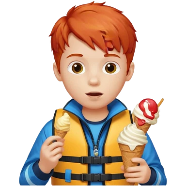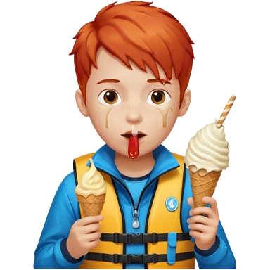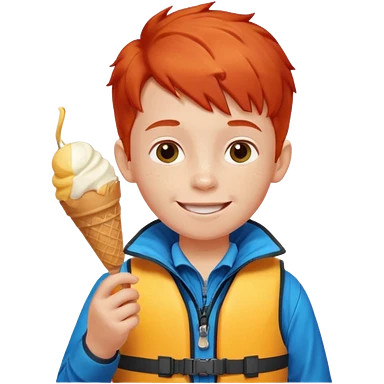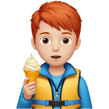 boy kid red haired wearing life jacket, eating ice cream emoji