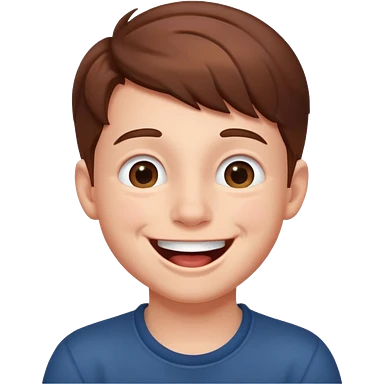 logo illustrated boy laughing out loud, chibi anime style, head and shoulders only, red cheeks, light brown eyes, short gray hair, cyberpunk jacket with blue colors, flashing background. emoji