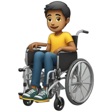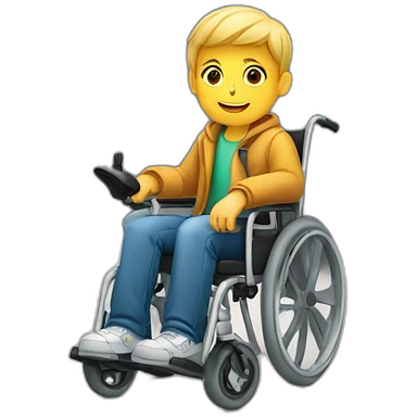 Brunette young boy with brown eyes in wheelchair smiling emoji