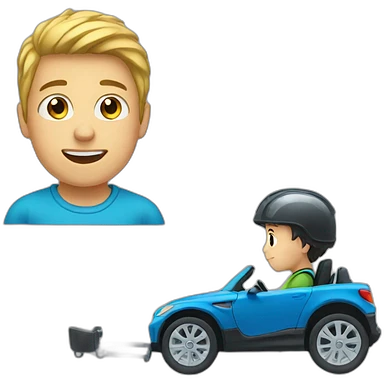 White Boy with dirty blonde hair and blue eyes in a wheelchair holding a trumpet emoji
