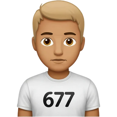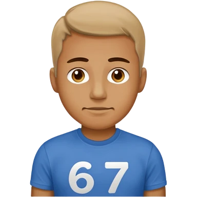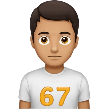A boy with fluffy hair and an ice design on shirts with a shirt saying “ 67 “ emoji