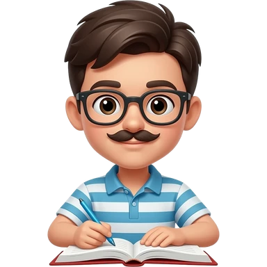 boy fair in colour with black bold glasses with dark brown hair and in right ear piercing with thunder shape stud emoji