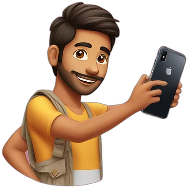 Punjabi young boy taking mirro selfie with iphone x emoji