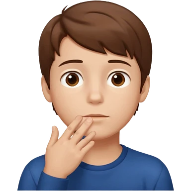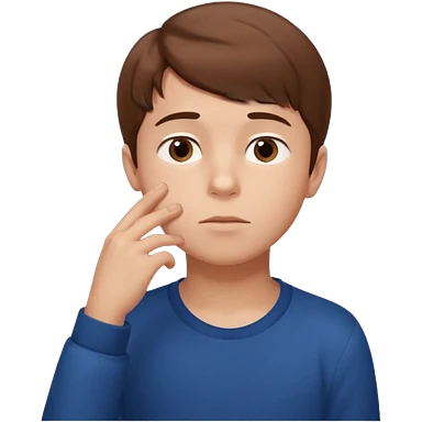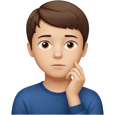 boy thinking with one hand on his chin emoji | AI Emoji Generator