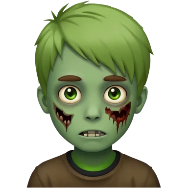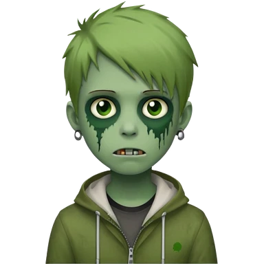 boy zombie with light brown emo hair and green skin and earpods emoji emoji
