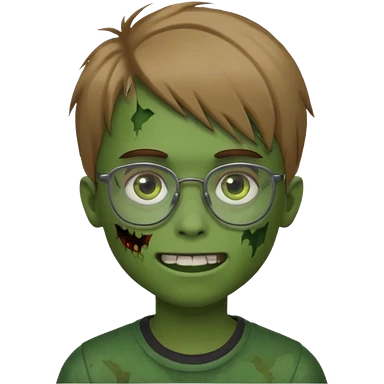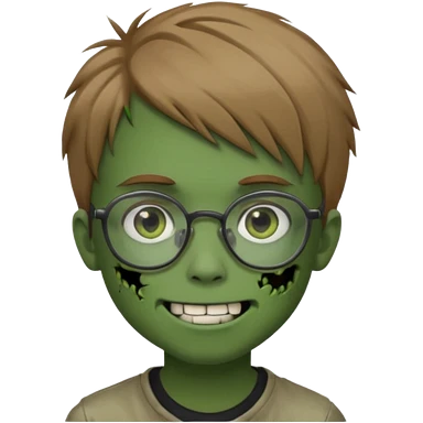 boy zombie with light brown emo hair and green skin and glasses and corner smile emoji