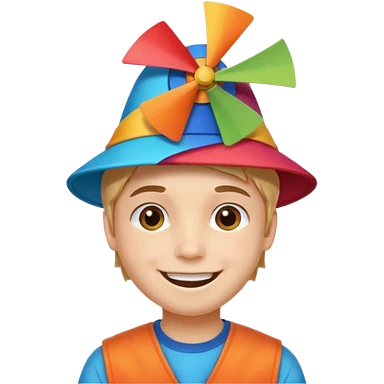 Boy wear colorful windmill hat emoji | AI Emoji Generator