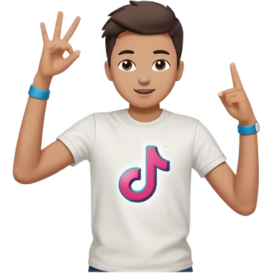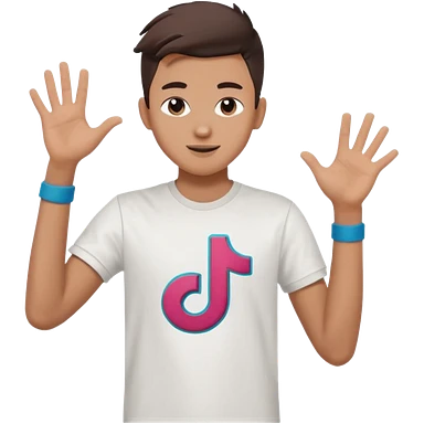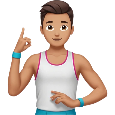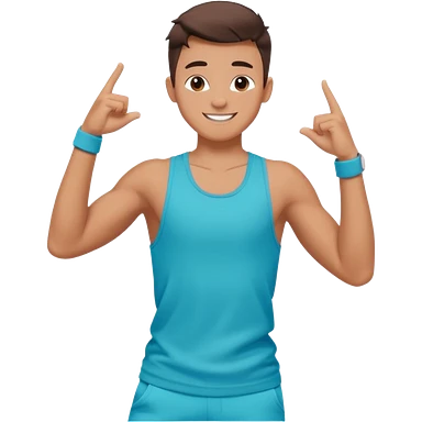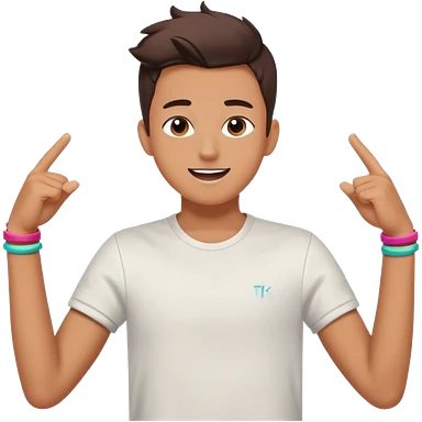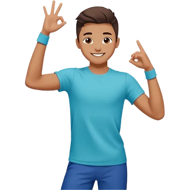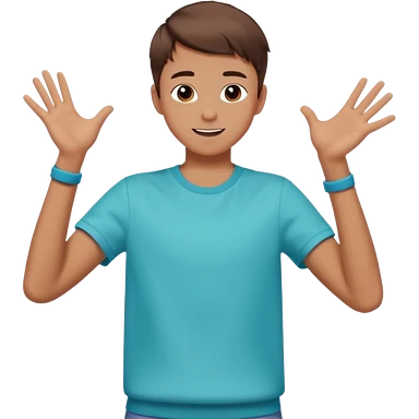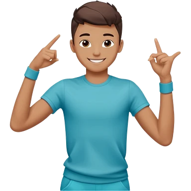 boy pointing to the sky from behind, half body, dark brown wavy hair, wearing blue jeans overalls and white shirt. emoji
